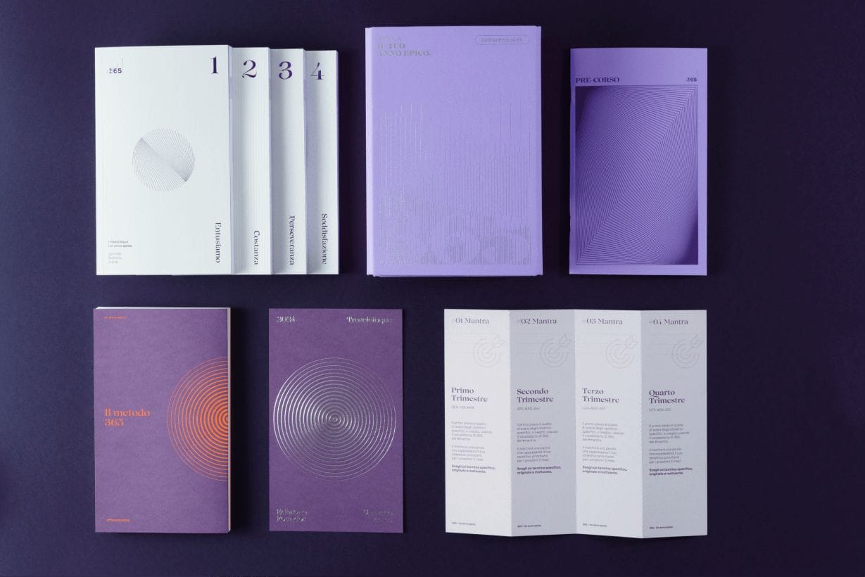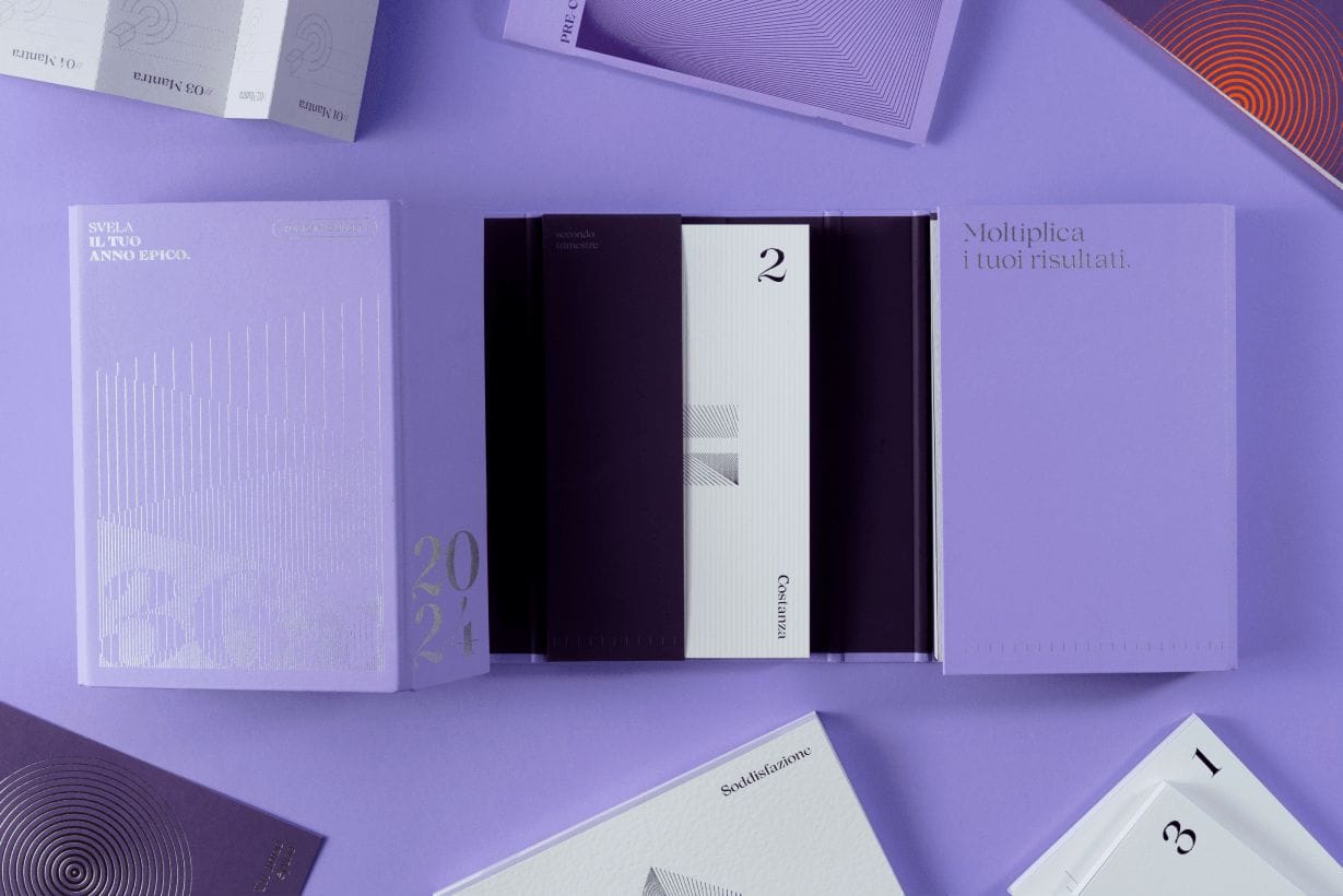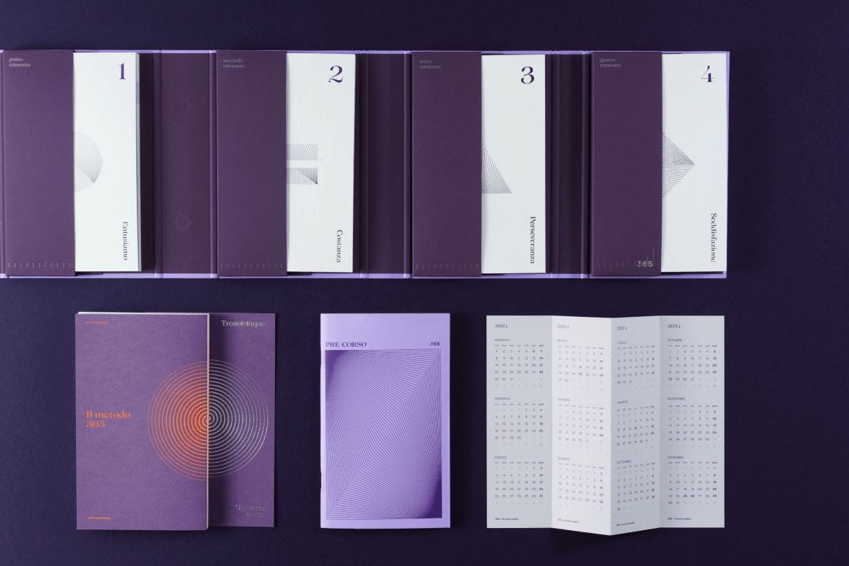 All’interno del Kit Ed. 2024, oltre al Quaderno del PRE-corso, troverai anche le quattro agende trimestrali, il calendario annuale per tenere traccia della tua àncora, il libretto delle istruzioni che raccoglie l’intero metodo 365, la cartolina numerata, i segnalibro con il calendario trimestrale e l’esclusivo raccoglitore…